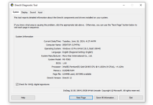 Bước 3: Trong cửa sổ DirectX Diagnostic Tool, chuyển đến tab System.