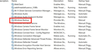 • Trong danh sách dịch vụ, tìm Windows Backup