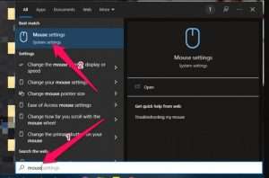 - Bước 1: Ấn tổ hợp phím Windows + S rồi tìm từ khoá Mouse, tiếp tục ấn vào mouse settings trong kết quả tìm kiếm được.