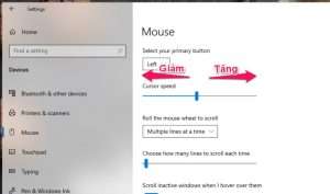 Thay đổi tốc độ chuột trong phần settings của windows 10,11