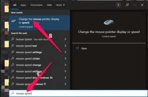 - Bước 1: Ấn tổ hợp phím Windows + S rồi tìm Mouse speed, sau đó nhấn vào Change the mouse pointer display or speed trong kết quả tìm kiếm.