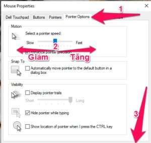Thay đổi tốc độ chuột trong phần Mouse Properties củ windows 10 và 11