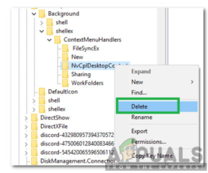 • Điều hướng đến: HKEY_CLASSES_ROOT\Directory\Background\shellex\ContextMenuHandlers\NvCplDesktopContext