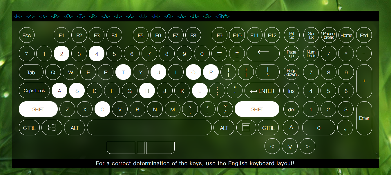 Bước 2: Giao diện test bàn phím ngay lập tức hiện ra, nhập vào phím cần kiểm tra. Phím hoạt động bình thường sẽ hiển thị màu trắng và sáng lên. Các phím không hoạt động sẽ không hiển thị.