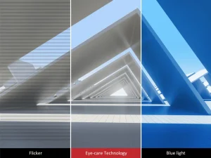 Công nghệ chống nhấp nháy và bộ lọc ánh sáng xanh giúp loại bỏ sự mỏi mắt do các tia sáng xanh có hại khi ngồi lâu trên máy vi tính.